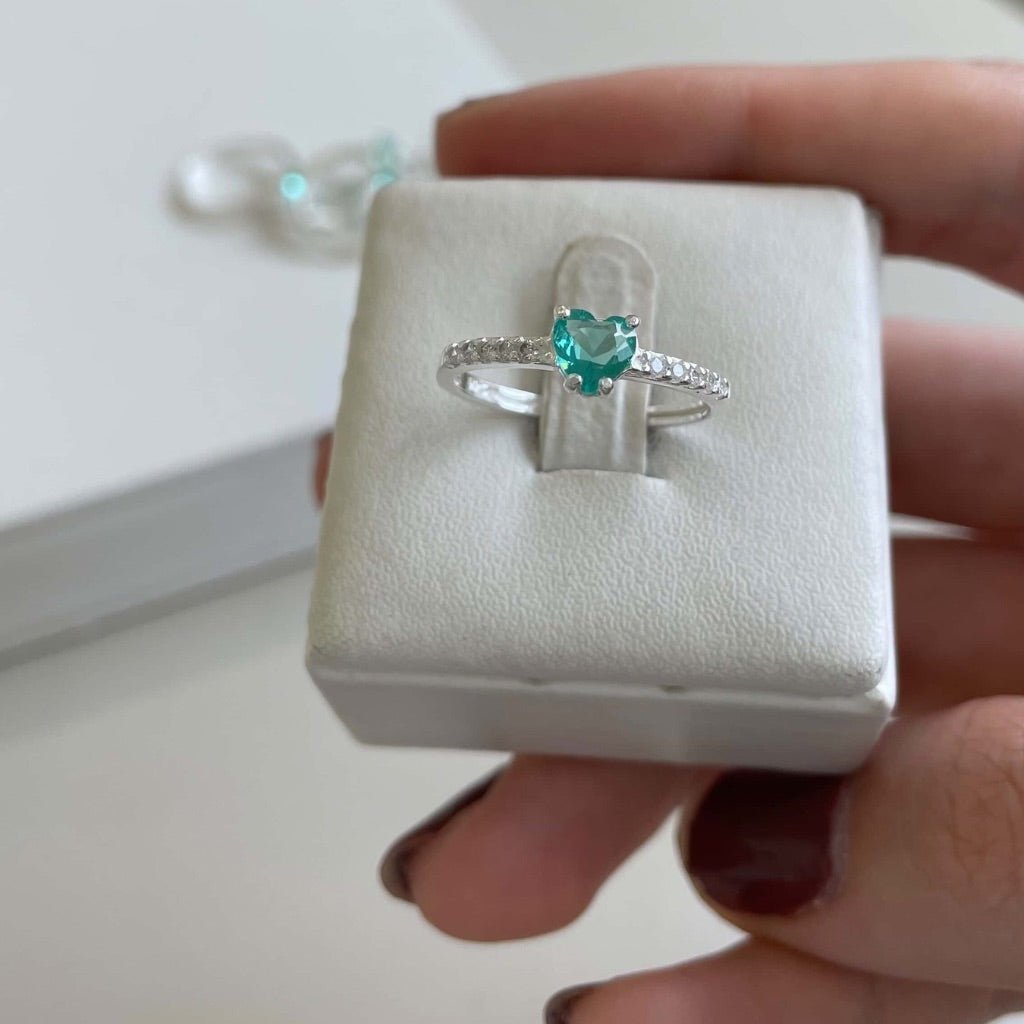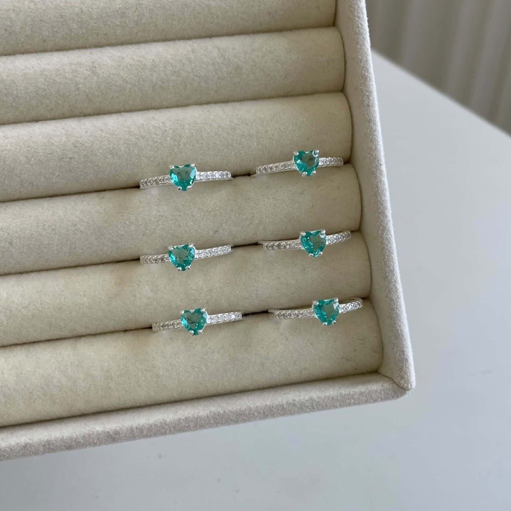 Anel Coração Azul Tifanny Com Zircônias Em Prata 925