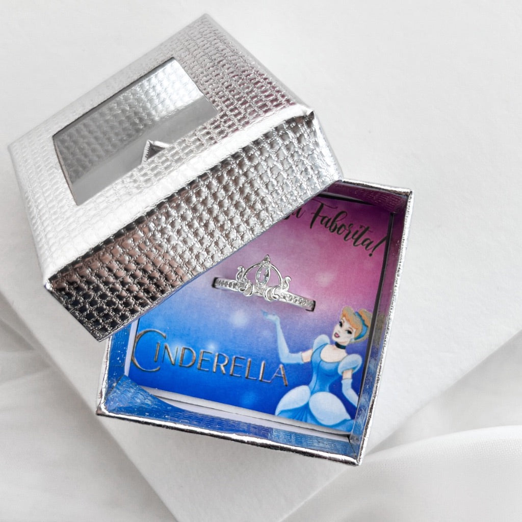 Anel Cinderela De Prata 925 Com Caixinha Personalizada